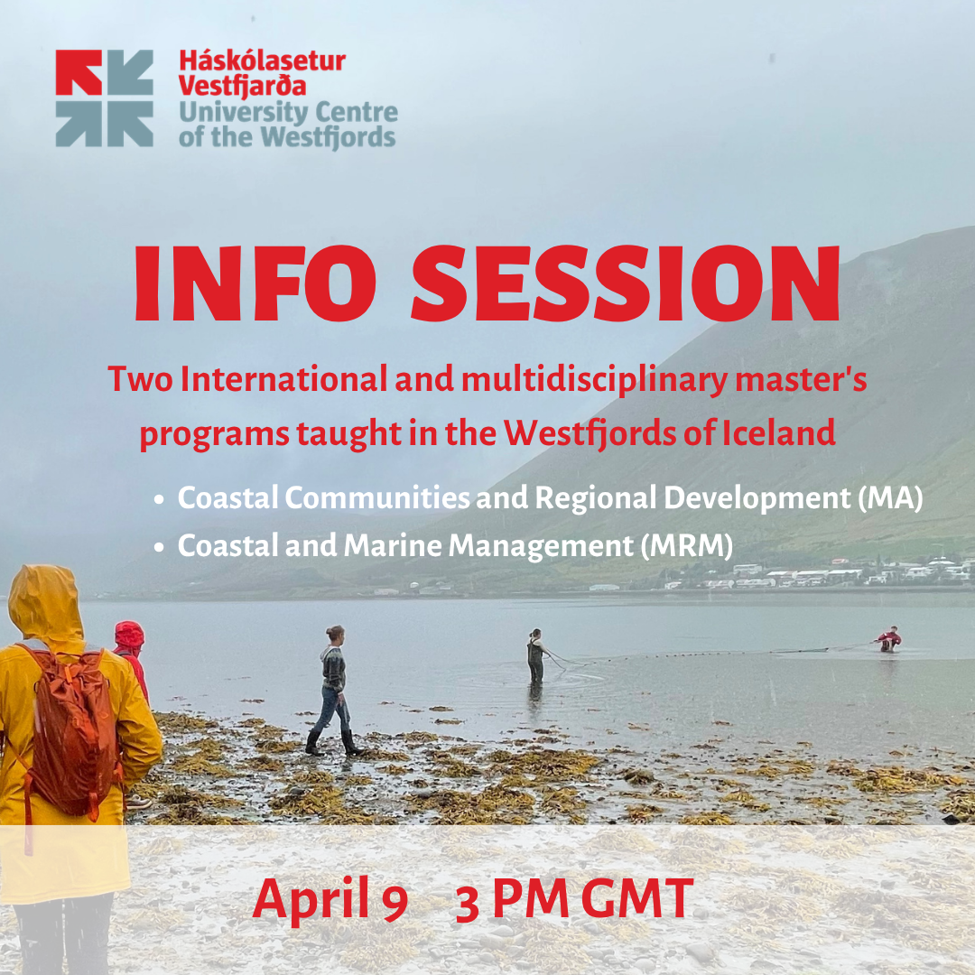 Join our program directors as well as a current student to find out more about the two international multidisciplinary masters programs offered at the University Centre of the Westfjords: Coastal Communities and Regional Development and Coastal and Marine Management