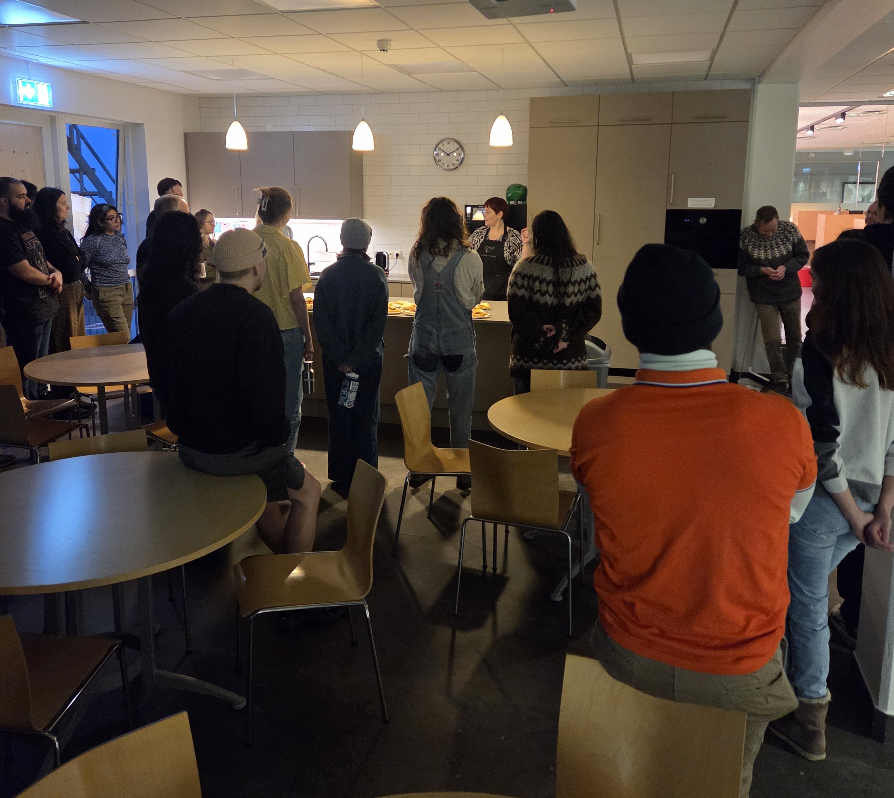 Það er árlegur siður hjá Gunnu Siggu, að halda sólarkaffi fyrir nemendur og starfsfólk HV, en ásamt því að baka pönnukökur, leiðir hún nemendur í allan sannleika um sólardaginn á Ísafirði og sögu íslensku pönnukökunnar… sem er nú ekkert endilega séríslensk, eða hvað? Hvað sem því líður, þá voru allir afskaplega sáttir við kaffiboðið.
